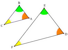 Twee figuren zijn gelijkvormig als het origineel en het vergrote/verkleinde figuur:. . Gelijkvormigheid en oppervlakte voorbeeld met driehoek.